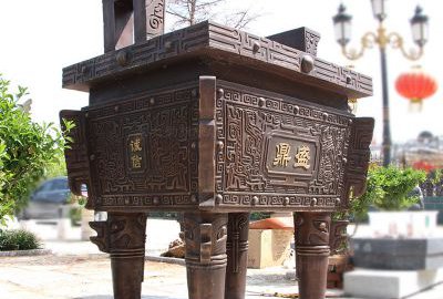 中國最著名的青銅鼎是鑄造于商朝的司母戊大方鼎,重量大約08噸,現(xiàn)在陳列于國家博物館內(nèi)。在濟(jì)寧大運河北岸,四足四方鼎雕塑,也有一個青銅鼎,名為任城寶鼎。此鼎高度為506米,重量為8噸,大約是商朝司母戊大方鼎的十倍。任城寶鼎旁邊有一個巨大的書籍型的石刻,根據(jù)這個石刻上的文字介紹,這個鼎是目前世界上最大的青鑄造四足四方鼎雕塑。